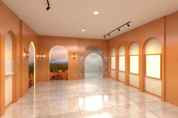 Proyek Interior Ruang Transisi Kurma Park, desain rapi, fungsional, dan estetik yang menguatkan alur ruang bagi pengunjung. Solusi interior profesional untuk area publik dan komersial.